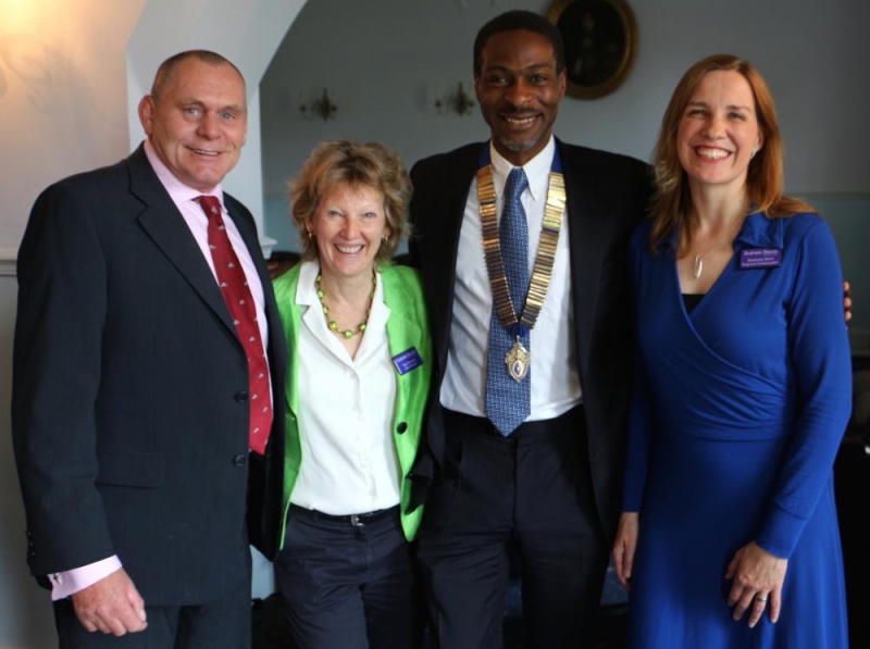 Biscotti Ambassadors Nick Rose (ExForces Energy) and Vanessa Hunt celebrate the 1st Birthday of their Biscotti group held at Bisham Abbey. Sue Reeves, the Founder of Business Biscotti, and Olu Odeniyi, President of Maidenhead & District Chamber of Commerce, said a few words of congratulations at the celebratory event on Thursday 21st May 2015.